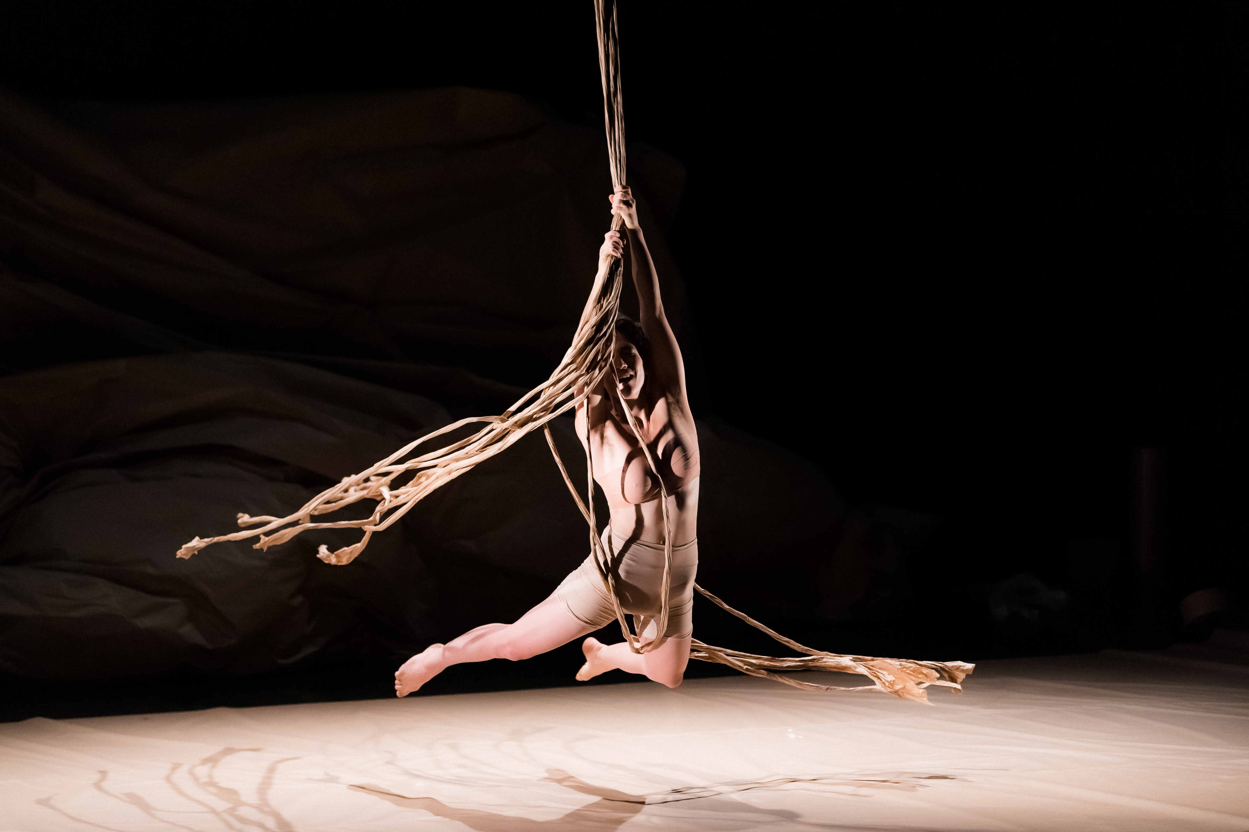 Le déplacement va jusqu’à l’abandon de l’agrès et des formes techniques associées. Du trapèze ne reste que l’ivresse du vertige ; les agrès sont modelés, aux confins de la scénographie et des arts visuels, à l’instar du travail de Johann Le Guillerm, équilibriste-dompteur d’objets, ou de celui de Cécile Mont-Reynaud, aérienne et architecte, imaginant des agrès-installations, comme ses « cordes fileuses » conçues avec Gilles Fer, cordes décors invitant à des rêveries poétiques comme à de nouveaux voyages acrobatiques. La réflexion se prolonge désormais jusque dans les matières utilisées, pour des objets inventés en s’éloignant des agrès normés, comme ces sculptures/cordes/drapés de papier conçus avec les plasticiens Alexis Mérat et Domitille Martin pour explorer la fragilité dans la résistance dans PLI d’Inbal ben Haïm (2021).