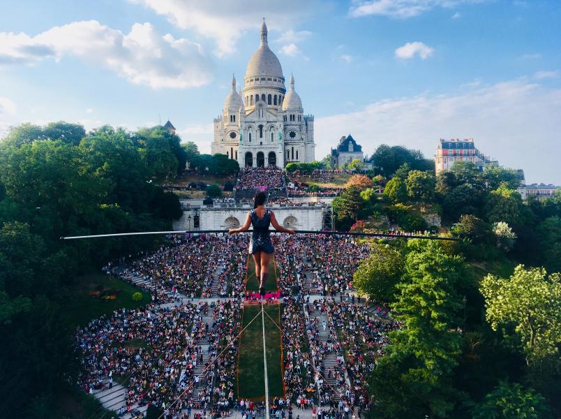 Tatiana-Mosio Bongonga a sept ans lorsqu’elle assiste à la traversée d’une funambule évoluant entre deux bâtiments, un coup de foudre à l’origine d’une véritable vocation. Devenue une star de la discipline, elle est aujourd’hui parmi les rares femmes à évoluer à plus de 30 mètres au-dessus du sol surune corde de 300 mètres de long.